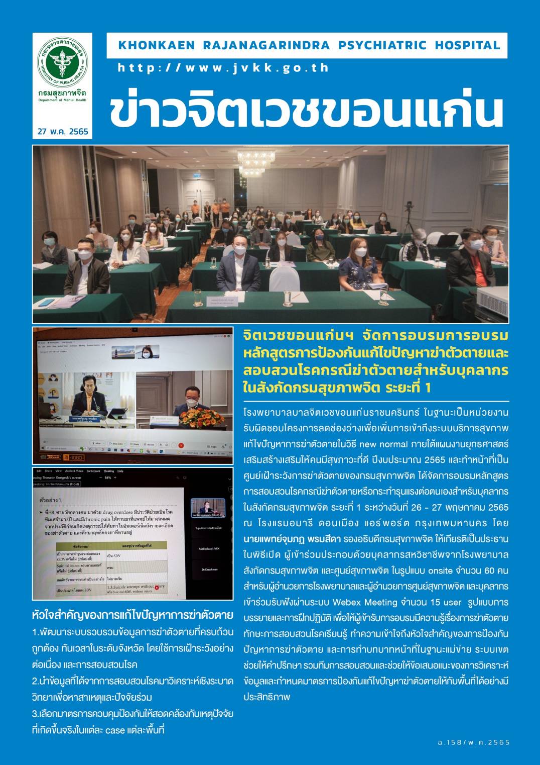 อบรมหลักสูตรการป้องกันแก้ไขปัญหาฆ่าตัวตายและสอบสวนโรคกรณีฆ่าตัวตายสำหรับบุคลากรในสังกัดกรมสุขภาพจิต ระยะที่ 1 ระหว่างวันที่ 26-27 พฤษภาคม 2565 photos and movies