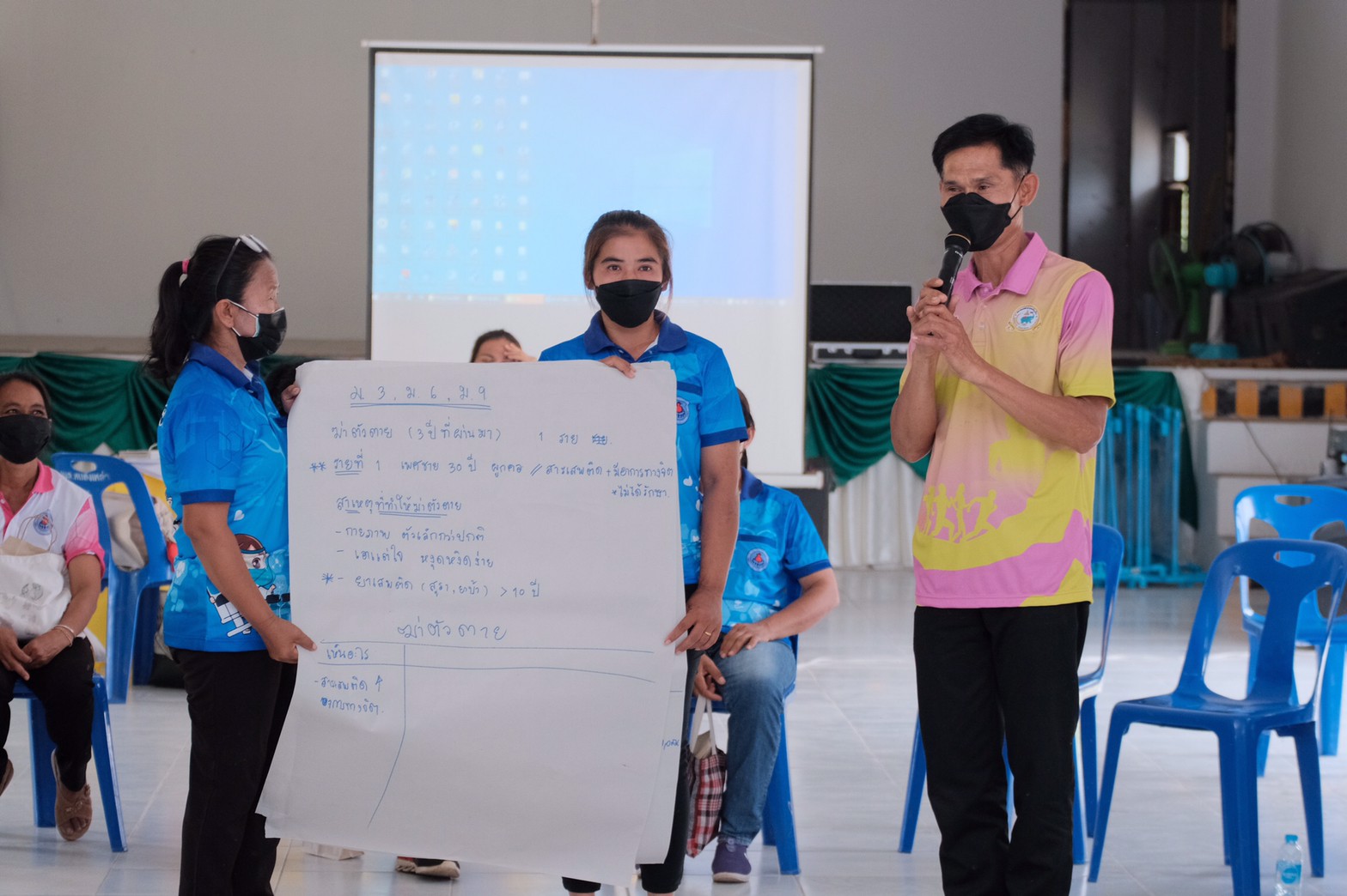 ประชุมเชิงปฏิบัติการสร้างการมีส่วนร่วมของชุมชนต่อการแก้ไขปัญหาการฆ่าตัวตายอำเภอเขื่อใน จังหวัดอุบลราชธานี ในวันที่ 28 เมษายน 2565 photos and movies