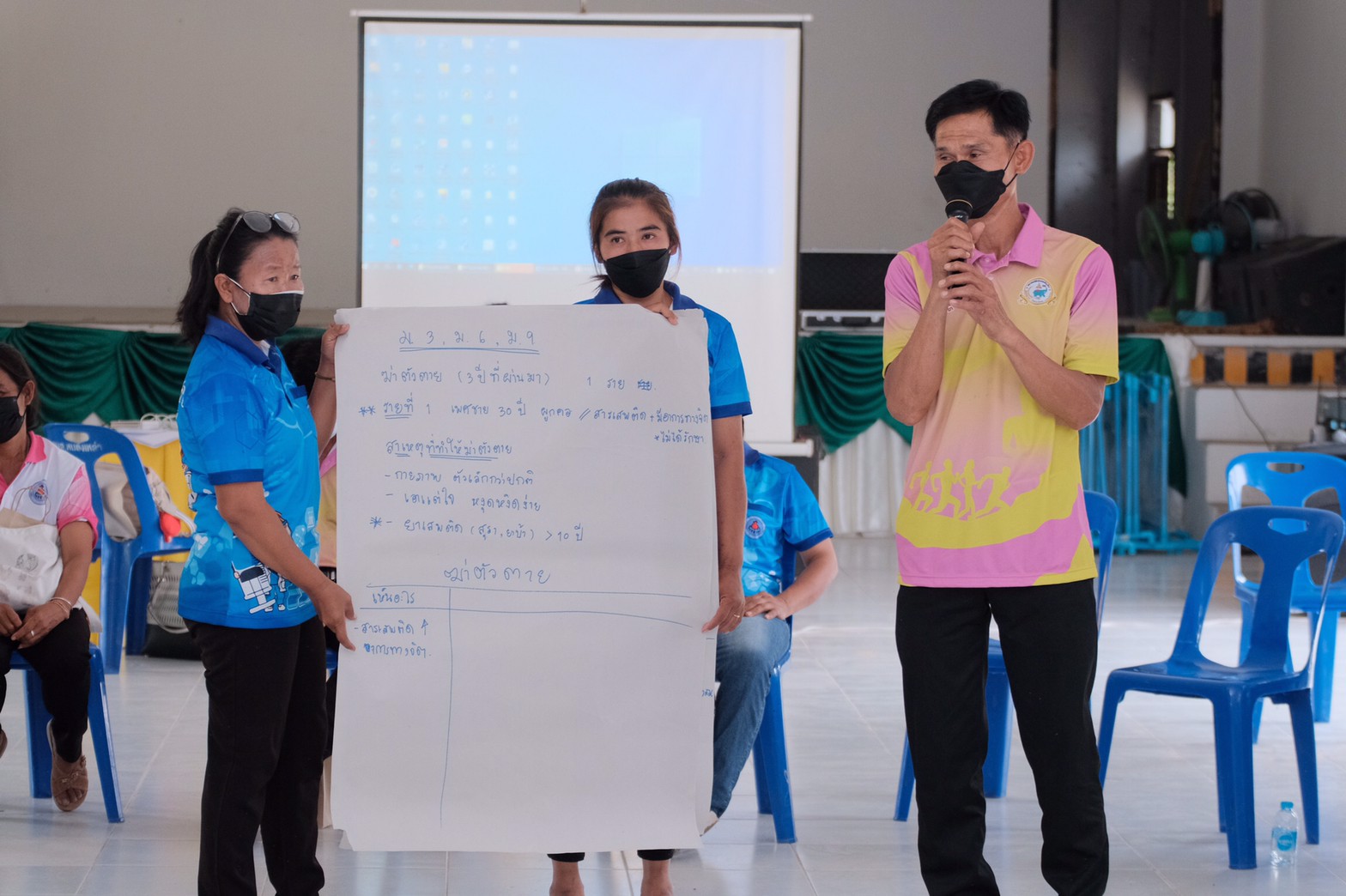 ประชุมเชิงปฏิบัติการสร้างการมีส่วนร่วมของชุมชนต่อการแก้ไขปัญหาการฆ่าตัวตายอำเภอเขื่อใน จังหวัดอุบลราชธานี ในวันที่ 28 เมษายน 2565 photos and movies